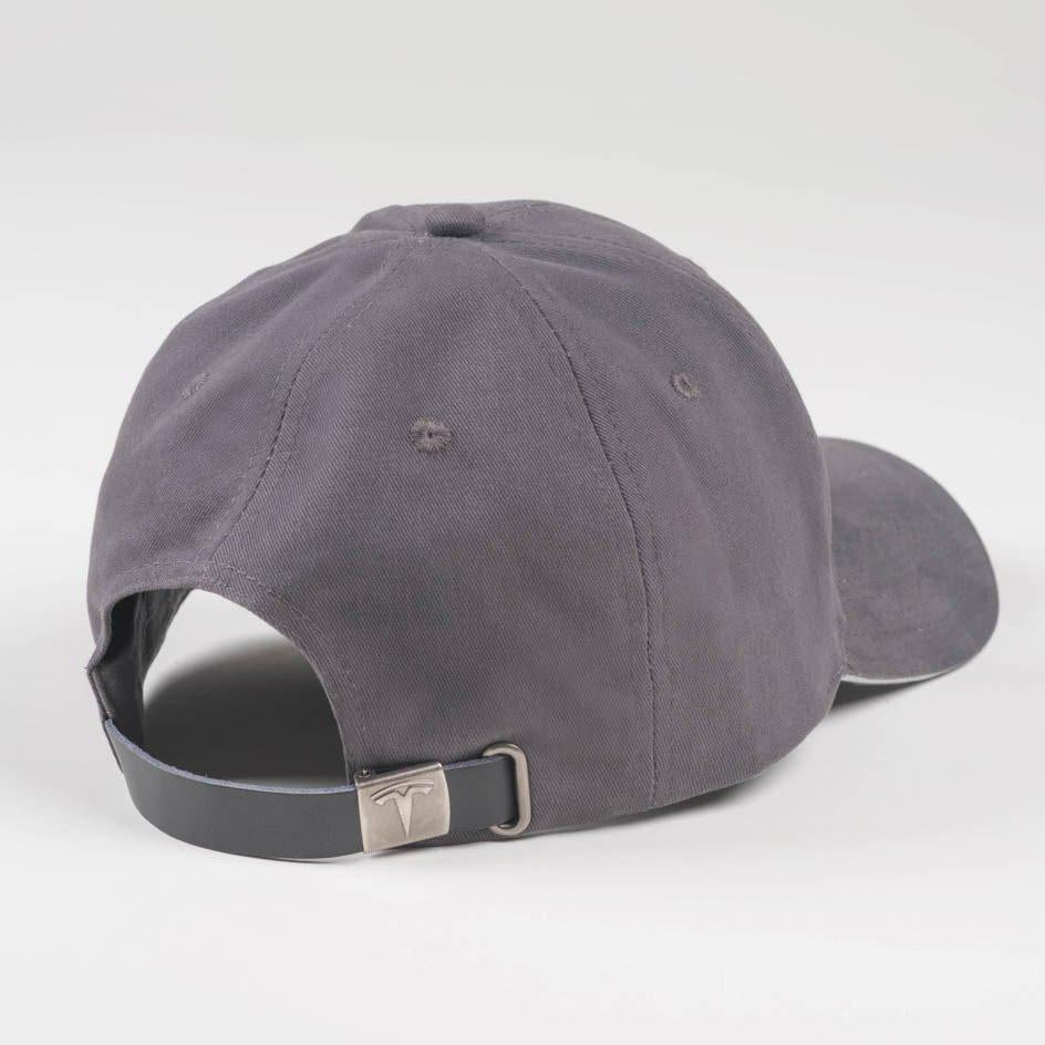 The Leather Trim Hat is constructed with style in mind. This hat features the Telsa Wordmark in gray on the front with a leather strap and a metal clasp on the back of the hat embossed with the Tesla T logo. One size fits most.