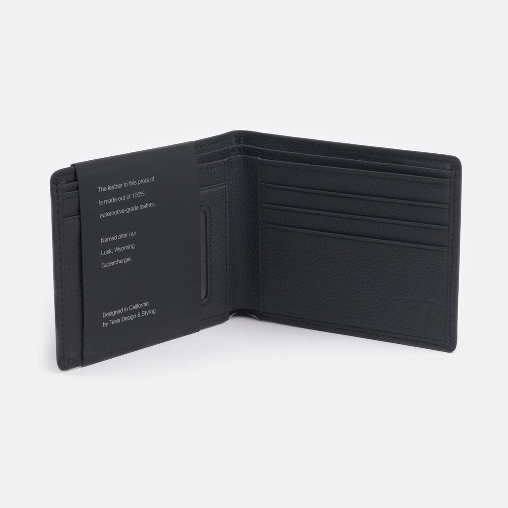 Simple elegance meets exceptional functionality. Our Lusk Wallet is designed in true Tesla style for the true Tesla fan. This accessory is handcrafted from the same automotive-grade leather used for your Model S seats. The Lusk Wallet is named after a Tesla Supercharger location in Wyoming.